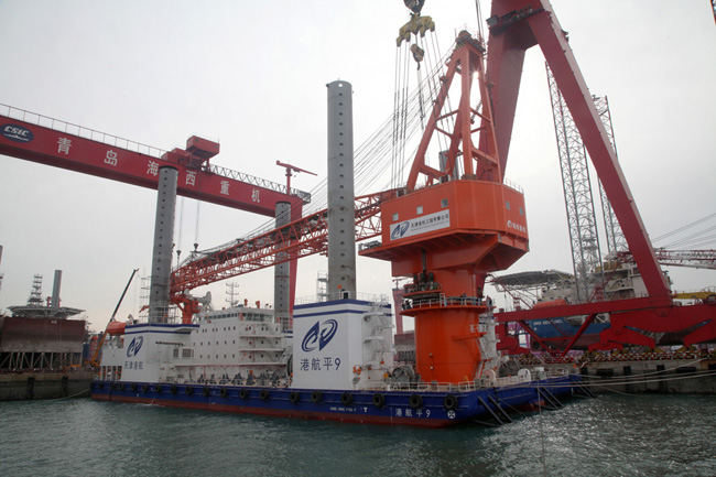 11月19日,青島海西重機(jī)為天津港航工程有限公司制造的1200t全回轉(zhuǎn)浮式起重機(jī)順利完成整機(jī)吊裝。