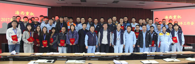 1月6日,海西重機(jī)2017年表彰暨2018年工作會(huì)在901會(huì)議室順利召開,公司主管及以上人員、2017年度優(yōu)秀員工參加會(huì)議,公司黨委書記、董事長(zhǎng)鄧振山主持會(huì)議。