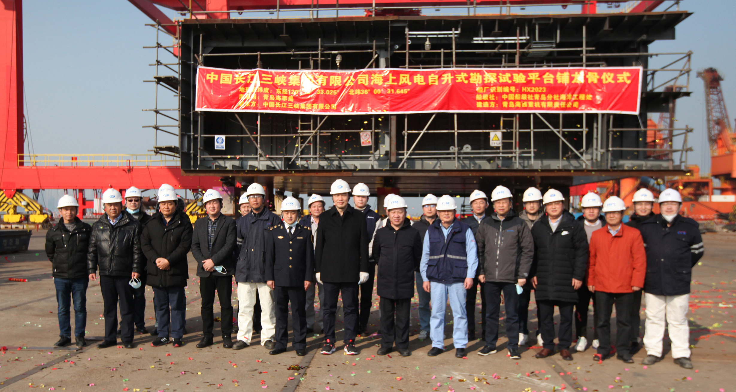 12月22日上午,在青島海事局、中國船級社青島分社、中國長江三峽集團有限公司、中國船舶集團旗下武漢船機海西重機各方代表共同見證下,“中國三峽101”海上風(fēng)電自升式勘探試驗平臺順利完成鋪龍骨儀式,標志著該項目正式進入平臺搭載建造階段。