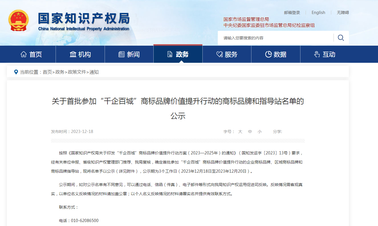 “千企百城”商標品牌價值提升行動,由國家知識產(chǎn)權(quán)局組織實施,旨在推動國內(nèi)企業(yè)加強商標品牌建設(shè),完善商標品牌管理體系,由“中國制造”向“中國品牌”轉(zhuǎn)變,提升商標品牌價值,有力支撐知識產(chǎn)權(quán)強國和品牌強國建設(shè),促進經(jīng)濟高質(zhì)量發(fā)展。