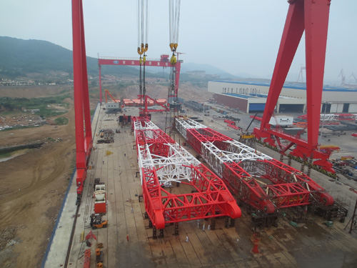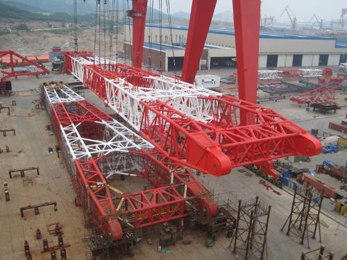 3600t浮式起重機(jī)臂架安裝分三步驟,共3吊,都是大噸位、高難度、極具挑戰(zhàn)性的吊裝工況。整個(gè)吊裝方案從策劃到定稿歷經(jīng)波折,歷時(shí)幾個(gè)月,通過(guò)技術(shù)人員的反復(fù)討論、驗(yàn)算、核對(duì)最終確定,本次臂架吊裝的順利完成充分驗(yàn)證了吊裝方案制定的準(zhǔn)確性和可靠性,對(duì)公司后續(xù)吊裝方案的設(shè)計(jì)積累了寶貴的經(jīng)驗(yàn)。